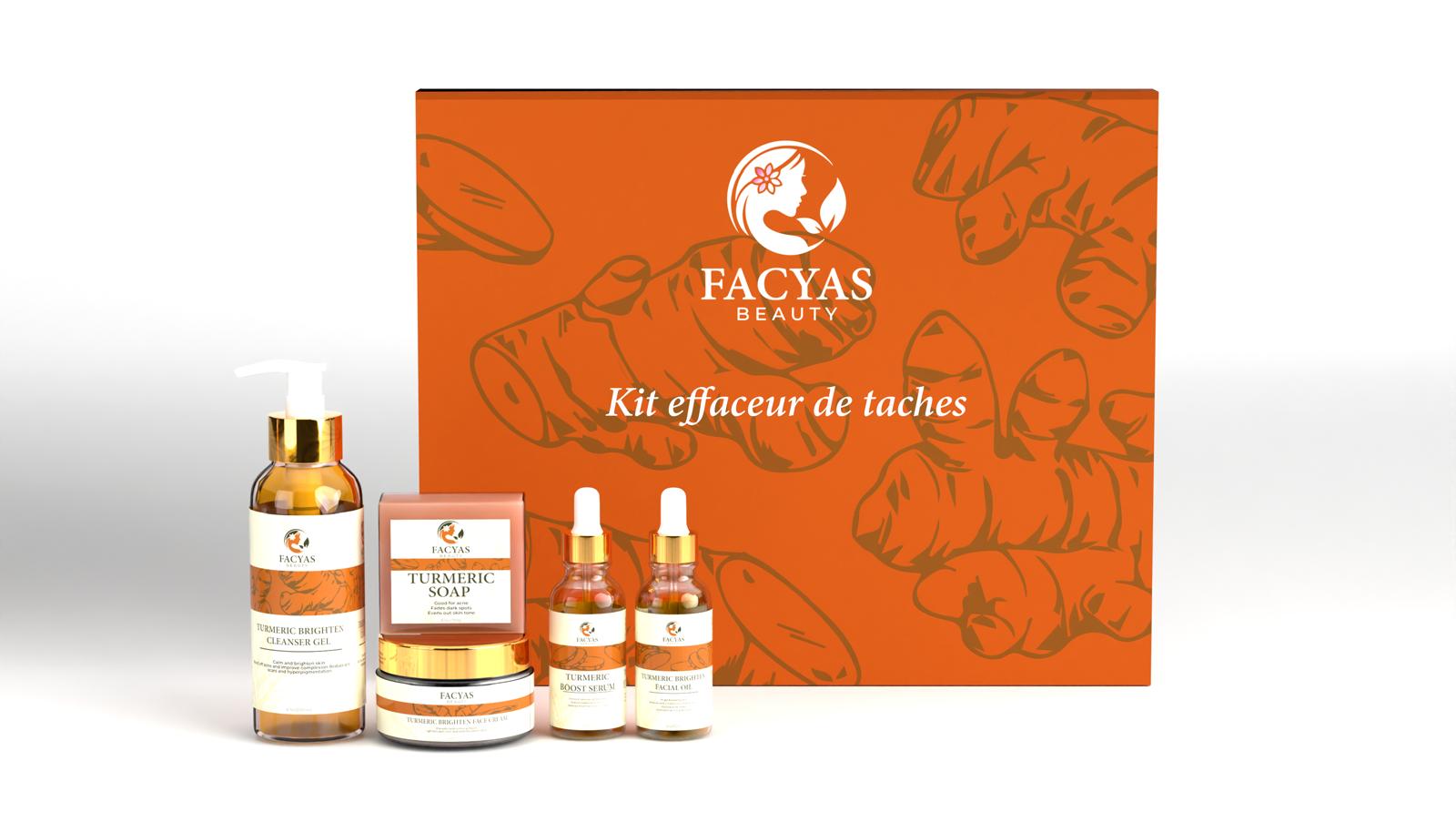 Retrouvez une peau unifiée et éclatante grâce au Kit Effaceur de Taches Facyas Beauty, spécialement formulé pour les peaux claires sujettes aux taches et marques. Ce rituel complet associe quatre soins puissants pour corriger, illuminer et protéger la peau au quotidien :